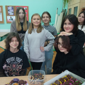 Dzień Chłopaka to sympatyczne święto i świetna okazja do wspólnej zabawy. Dziewczęta z klasy 7 b zrobiły tego dnia swoim kolegom słodką niespodziankę - upiekły babeczki, czekoladowe brownie i fantazyjne ciastka w kształcie krawatów.