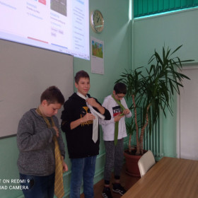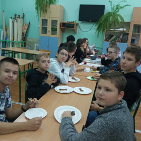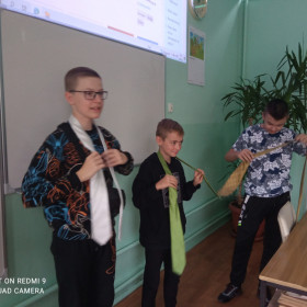 Siódmoklasistki przygotowały dla chłopów zabawne quizy oraz zaprosiły ich do zawodów w najszybszym wiązaniu krawata (Kacper Chłopek zrobił to najszybciej, o włos wyprzedzając Dominika Człowiekowskiego). Wszystkie słodkości w mig zniknęły z talerzy, a i z quizem chłopcy poradzili sobie śpiewająco.