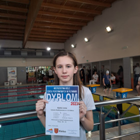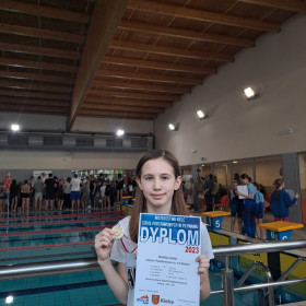 Uczennica klasy 4b - LENA KUKLA , zajęła 5 miejsce w wyścigu na 50 metrów stylem dowolnym z wynikiem 40.13 oraz 1 miejsce w wyścigu na 50 metrów stylem klasycznym z wynikiem 49.04 !!!