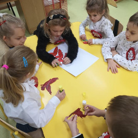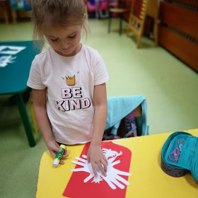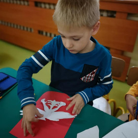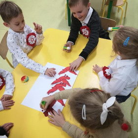 Dzieci wykonywały zadania i prace plastyczne związane z 11 listopada, a także uczyły się pieśni patriotycznych i ćwiczyły Hymn Polski, by móc w pełni uczestniczyć w szkolnych obchodach Narodowego Święta Niepodległości.
