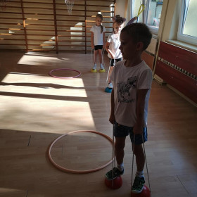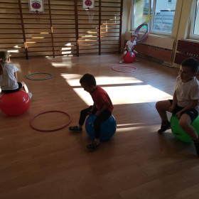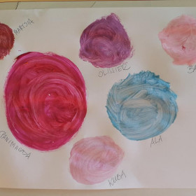 Dzisiaj dzieci z oddziału przedszkolnego, po wysłuchaniu historii Kropki z książeczki o Vashti, stworzyły własne kropki, pięknie ubrały się w kropki, a podczas zajęć ruchowych ćwiczyły z przyrządami w kształcie kropki.