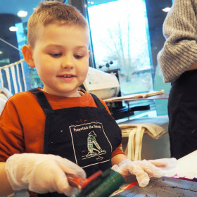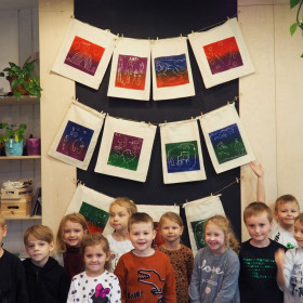 Dzieci poznały technikę druku wypukłego, a następnie wykonały projekty toreb lub worków. Po wykonaniu odpowiedniej matrycy wydrukowały je na płóciennych torbach/workach przy pomocy prasy drukarskiej. Efekt końcowy przeszedł najśmielsze oczekiwania.