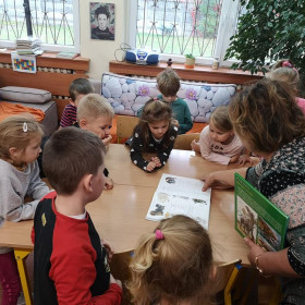 Biblioteka szkolna gościła ostatnio u siebie oddział przedszkolny. Była to pierwsza wizyta najmłodszych dzieci naszej szkoły w bibliotece.