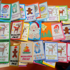 Grudzień to miesiąc pełen życzeń, a najlepszą formą na ich przekazanie są kartki świąteczne. Nasze Świetliczaki tym razem wykonały Serdeczną Karteczkę dla osób samotnych, starszych. Wszyscy pracowali, niczym w fabryce Św. Mikołaja. W sumie powstało 110 kartek świątecznych!