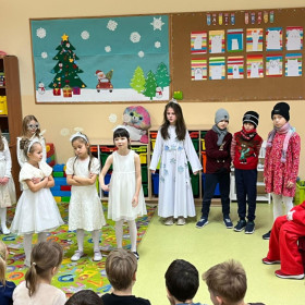 Uczniowie wspaniale wcielili się w swoje role - były Śnieżynki, Pani Zima, Mikołaj i Dzieci. Cały występ urozmaiciła gra na flecie oraz wspólne śpiewanie kolęd i piosenek o tematyce zimowej. Przedstawienie przeniosło wszystkich w magiczny i świąteczny nastrój.