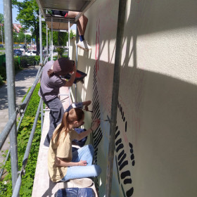 Dzięki współpracy z Regionalnym Centrum Wolontariatu w Kielcach i realizacją przez naszą szkołę projektu długoterminowego z Europejskiego Korpusu Solidarności grupa wolontariuszy wykonała na budynku naszej szkoły mural przedstawiający Tadeusza Kościuszkę – patrona Szkoły Podstawowej nr 15. Przez trzy tygodnie Irina, Aida i Lusine z Armenii, Lynn z Niemiec, Gabriele z Włoch, Anastasiia z Ukrainy, Lucas z Francji ciężko pracowali nad wykonaniem portretu o ogromnych rozmiarach 11 metrów szerokości i ponad 9 metrów wysokości. Wolontariusze użyli projektora, którym na ścianę budynku nanieśli projekt, następnie po odrysowaniu kontur kredą, wypełniali je farbami. Dzięki tej metodzie powstał niezwykły portret, składający się z kilkuset kolorowych pasków tworzących wizerunek Tadeusza Kościuszki. Jest to największe dzieło tej międzynarodowej grupy młodych ludzi, którzy na zawsze pozostaną w naszych sercach, a praca, którą wykonali będzie wspaniałą wizytówką naszej szkoły i dowodem, że poprzez solidarną współpracę można tworzyć wielkie dzieła.