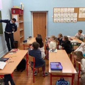 Dziękujemy za interesującą prelekcję na temat bezpieczeństwa oraz przybliżenie dzieciom specyfiki zawodu policjanta.