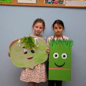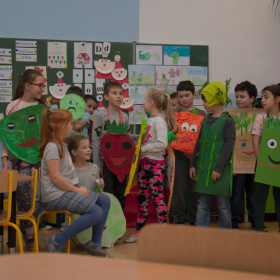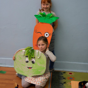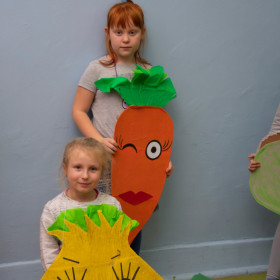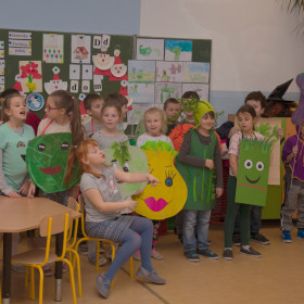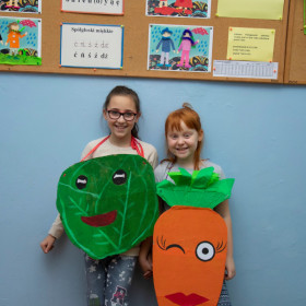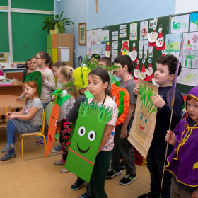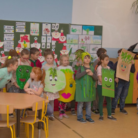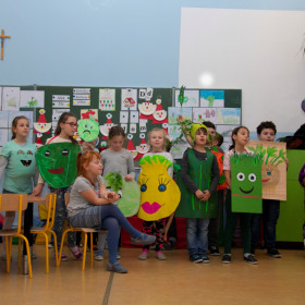 Mali aktorzy przebrani za warzywa z wielkim przejęciem i humorem odegrali powierzone im role. Wszyscy widzowie z zaciekawieniem oglądali zabawne scenki z “życia warzyw” zaprezentowane przez naszych drugoklasistów. Inscenizacja wiersza miała uświadomić dzieciom, jak ważną rolę w naszej diecie odgrywają warzywa, które są głównym źródłem witamin i składników mineralnych.
