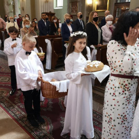 Po uroczystej Mszy Świętej, dzieci otrzymały chlebki obrazujące Chleb Eucharystyczny, który Jezus łamał dla swoich uczniów w czasie ostatniej wieczerzy. Teraz to oni mieli podzielić się nim wśród rodziców, rodziny i zaproszonych gości.