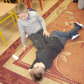 Pierwszoklasiści dowiedzieli się jak należy zachować się dzwoniąc pod numery alarmowe, analizowali na co trzeba zwrócić szczególną uwagę i jakie czynności wykonywać krok po kroku podczas ratowania ludzkiego życia.