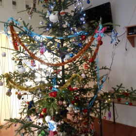 Efekty zespołowej pracy wszystkich uczniów można podziwiać w całej szkole - oryginalne i kunsztowne łańcuchy stanowią piękną świąteczną dekorację naszych choinek, sal oraz korytarzy. Każdy z nich jest wyjątkowy i zasługuje na uznanie.