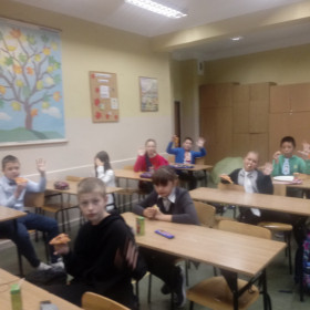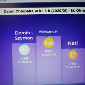Uczniowie brali też udział w różnych  grach, quizach i zabawach. Chłopcy z klasy 6B wzięli udział w specjalnej edycji Milionerów, w której w rolę prowadzącego wcieliły się ich koleżanki z klasy :) Każdy z nich otrzymał miły upominek oraz dyplom Super Chłopaka. Na koniec wszyscy zagrali w jedną z ulubionych klasowych gier - "Mafię". To był świetny sposób czas spędzony we wspólnym gronie! :)
