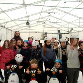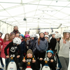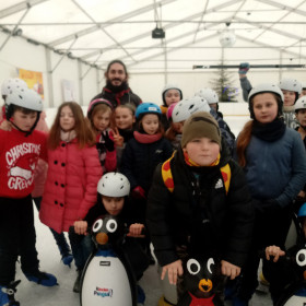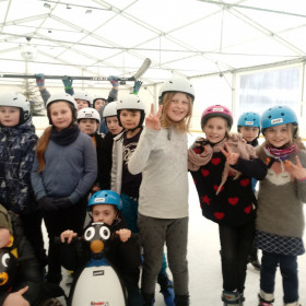 Klasy 4 a i  4 b postanowiły skorzystać z uroków zimy i 12 lutego odwiedziły lodowisko "Telegraf".  Zabawa na lodzie  szybko wszystkim  się spodobała - uczniowie umiejący jeździć na łyżwach pomagali tym, którzy radzili sobie nieco słabiej.
