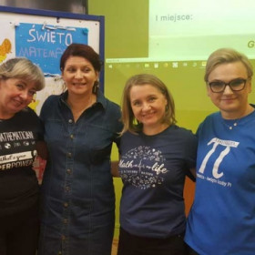 14 marca to szczególny dzień w naszej szkole - od kilku już lat w tym dniu wraz z paniami od matematyki świętujemy światowy Dzień Liczby Pi. Podobnie było i tym razem - rozstrzygnięto konkursy matematyczne, poznaliśmy sylwetki słynnych polskich matematyków i znów znaleźli się śmiałkowie chętni do bicia rekordu w recytacji rozwinięcia dziesiętnego liczby Pi.