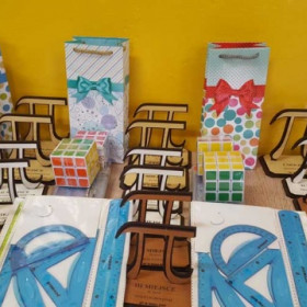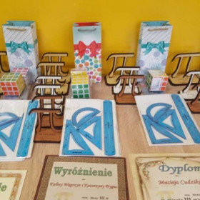 Nagrody rzeczowe (upominki i pizze) zostały ufundowane przez Radę Rodziców działającą przy naszej Szkole, natomiast piękne statuetki z liczbą Pi wykonał Norbet Kot, uczeń klasy IIId gimnazjum wraz ze swoim tatą, za co serdecznie dziękujemy!