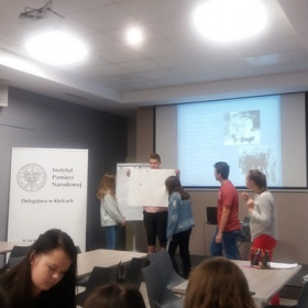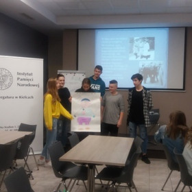 Uczniowie klasy VIII b brali udział w warsztatach edukacyjnych zorganizowanych przez Instytut Pamięci Narodowej w Kielcach - Przystanek Historia. Obejrzeli ciekawą prezentację związaną z trudną i długą drogą wiodącą ku niepodległości. Wykazali się dużą wiedzą historyczną odpowiadając na pytania związane z Polskimi Legionami, Napoleonem, Powstaniem Listopadowym czy Styczniowym. Bez problemów uzupełnili kartę pracy związaną z tą tematyką.