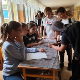 Specjalne komisje eksperckie z klas VI c i V b przeprowadzały na długich przerwach egzaminy. Każdy uczestnik w określonym czasie miał za zadanie rozwiązać kilka przykładów związanych z mnożeniem lub dzieleniem liczb naturalnych.