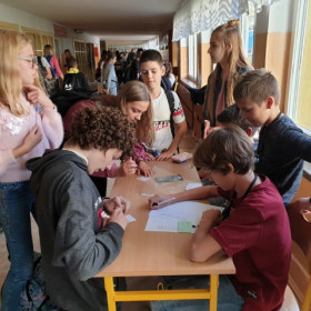 4 października przypada Międzynarodowy Dzień Tabliczki Mnożenia - z tej okazji w naszej szkole pojawiły się specjalne stoiska, gdzie można było przetestować swoją wiedzę z tej dziedziny.