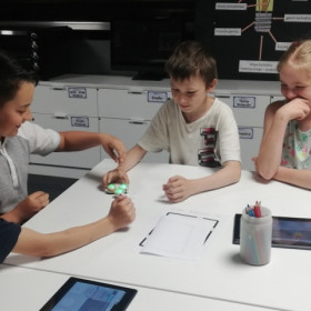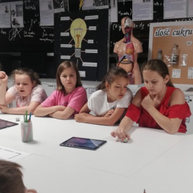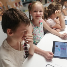 Na początek uczniowie wybrali się do Energetycznego Centrum Nauki. Czekały tam na nich małe "Ozoboty" czyli roboty, które uczyli się programować. Robociki wykonywały polecenia, które wcześniej dzieci układały w specjalnym programie na tabletach. Najciekawszym okazało się programowanie z użyciem pętli - dzięki nim te mini urządzonka nie tylko chodziły, ale też skakały jak żabki ;)