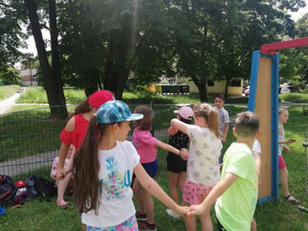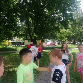 Ostatnia część dnia była dla uczniów niespodzianką - wychowawczyni zabrała wszystkich na lody, a zaraz po nich bawili się na placu zabaw, gdzie nie tylko mogli skorzystać z huśtawek i karuzel, ale też chętnie angażowali się w integrujące gry i zabawy.