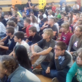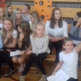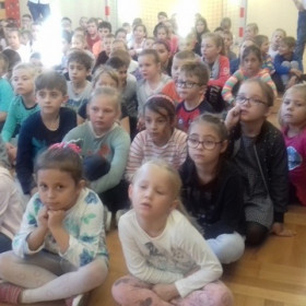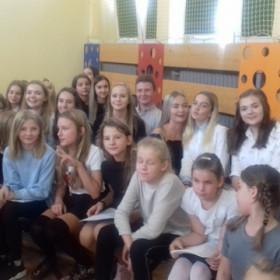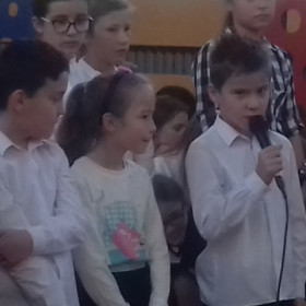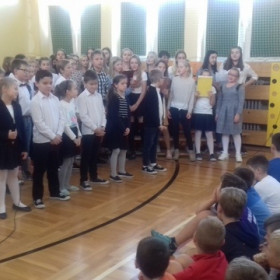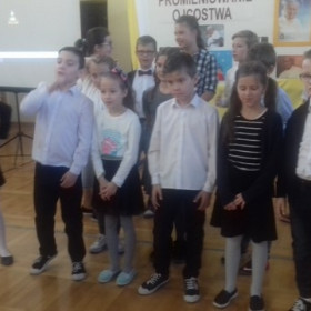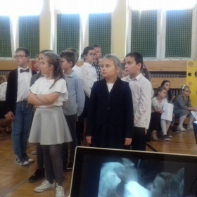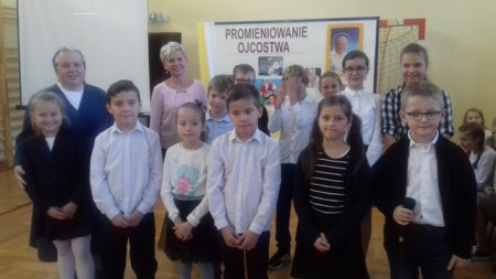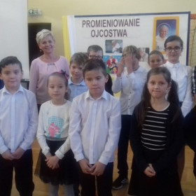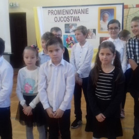 Pod kierunkiem nauczycieli religii, muzyki i wychowawcy świetlicy uczniowie przygotowali montaż słowno-muzyczny ukazujący niezwykłą osobowość, a przede wszystkim świętość Jana Pawła II.
