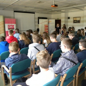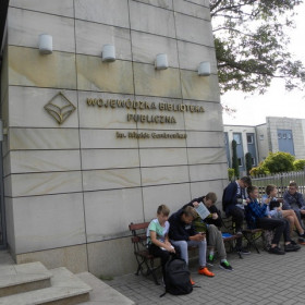 17 września uczniowie klasy 8a, 8b oraz 7a wzięli udział w spotkaniu autorskim z Ewą Nowak, które odbyło się w Wojewódzkiej Bibliotece Publicznej w Kielcach.