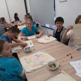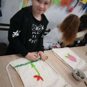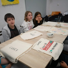 Po prezentacji i pogadance uczniowie ozdobili płócienne worki, które zabrali ze sobą.