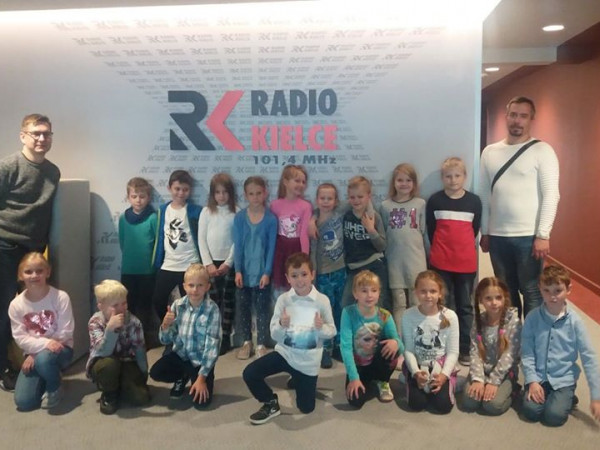 Uczniowie klasy II b zwiedzili pomieszczenia, w których nagrywane są audycje radiowe, a kilku odważnych uczniów wzięło udział w programie nadawanym na żywo.