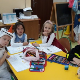 Na zajęciach podziwialiśmy przebrania naszych Koleżanek i Kolegów, opowiadaliśmy dzieje postaci, za które byliśmy przebrani: syrenka Barbie, księżniczki z różnych bajek, Elza i Olaf, strażak, Spider meni ...