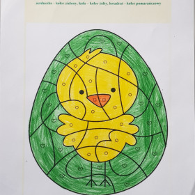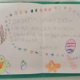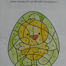 Zabawy muzyczno-ruchowe i plastyczne z rodzicami /dowolna muzyka, tańce wygibasy, konkursy, np. kto szerzej łapki rozłoży, jakie może być największe jajo, jak ciężki bywa koszyk, dalsze do inwencji dzieci i rodziców/