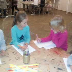 rozmawiamy na zajęciach o tradycjach, kartkach, świątecznych ozdobach i upominkach. Uczestniczyliśmy także w świątecznych warsztatach w  Muzeum Narodowym