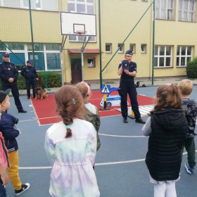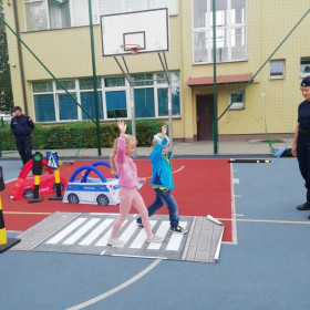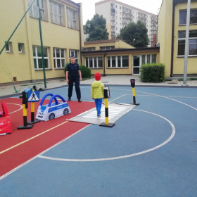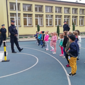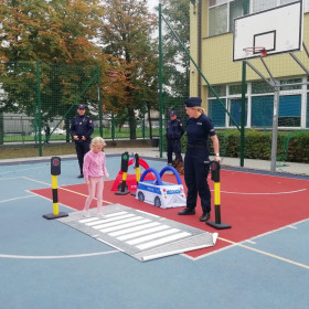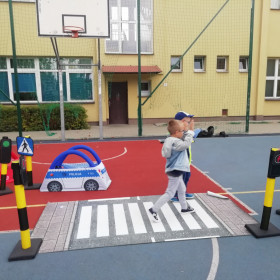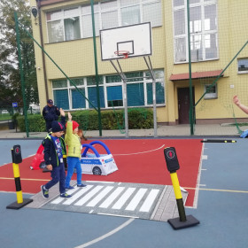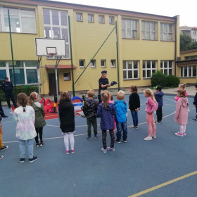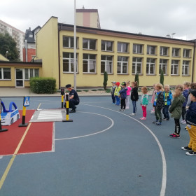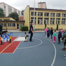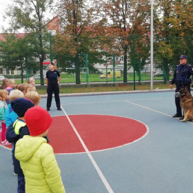 Dnia 17.09.2020 r. uczniowie z oddziału przedszkolnego 0 "A" ćwiczyli pod okiem fachowców prawidłowe zasady przechodzenia przez jezdnię. Dodatkową atrakcją było spotkanie z psem funkcjonariuszem Straży Ochrony Kolei. Dzieci z dużym zainteresowaniem oglądały niebywałe umiejętności psa :)