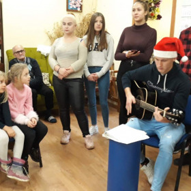 Wcześniej przygotowaliśmy z naszą Panią małe upominki, kartki z życzeniami oraz pastorałki do wspólnego kolędowania. Było świetnie, nastrojowo i wzruszająco. To było ogromne przeżycie dla nas i Seniorów.
