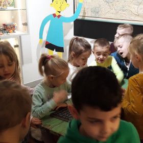 Tak znaleźliśmy się w świecie „starych” i nowych zabawek, którymi bawili się nasi dziadkowie, rodzice oraz tych, które teraz zachwycają nas. Z zainteresowaniem słuchaliśmy opowieści pani przewodnik o zabawkach, sposobach ich tworzenia, a także o zabawach bliskich wszystkim dzieciom. To naprawdę istny dziecięcy raj.