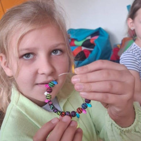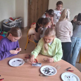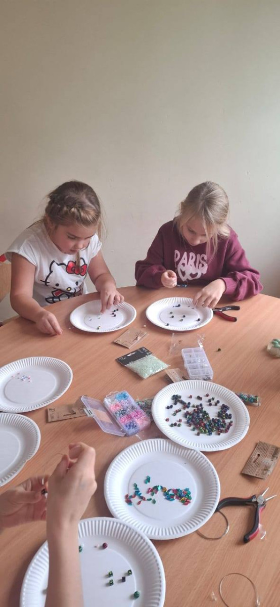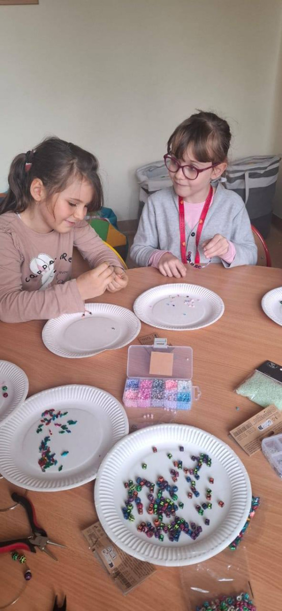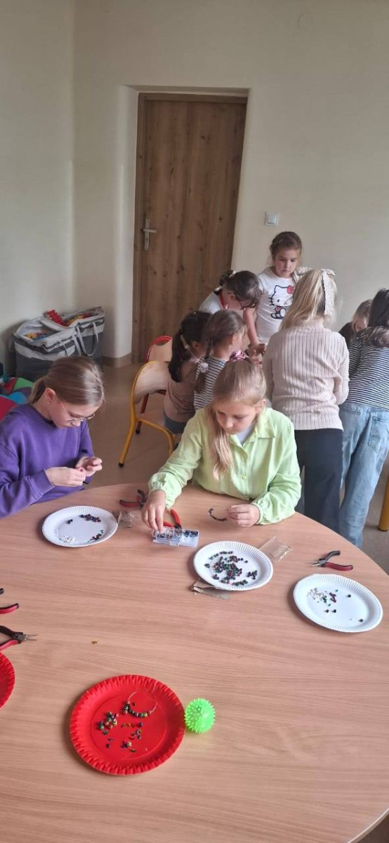 Z ogromnym zaangażowaniem i pomysłowością dzieci projektowały i wykonywały własne bransoletki, naszyjniki oraz breloczki. Kolorowe koraliki, sznurki i zawieszki zamieniły się w prawdziwe małe dzieła sztuki!
