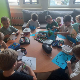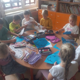 Z okazji Dnia Marzyciela nasze świetliczaki dowiedziały się, kim jest marzyciel i co oznacza „bujanie w obłokach”. Następnie, właśnie na obłokach namalowali to, o czym marzą najbardziej. Pomysły były przeróżne - od super zabawek, poprzez zwierzątka domowe, aż po egzotyczne wakacje włącznie. Trzeba przyznać, że naszym uczniom bujanie w obłokach nie jest obce!