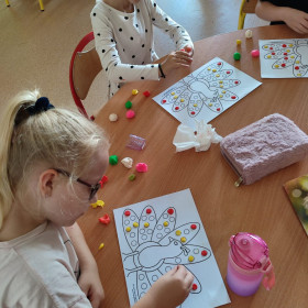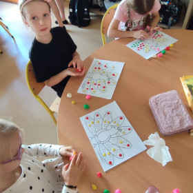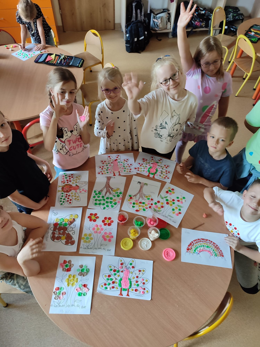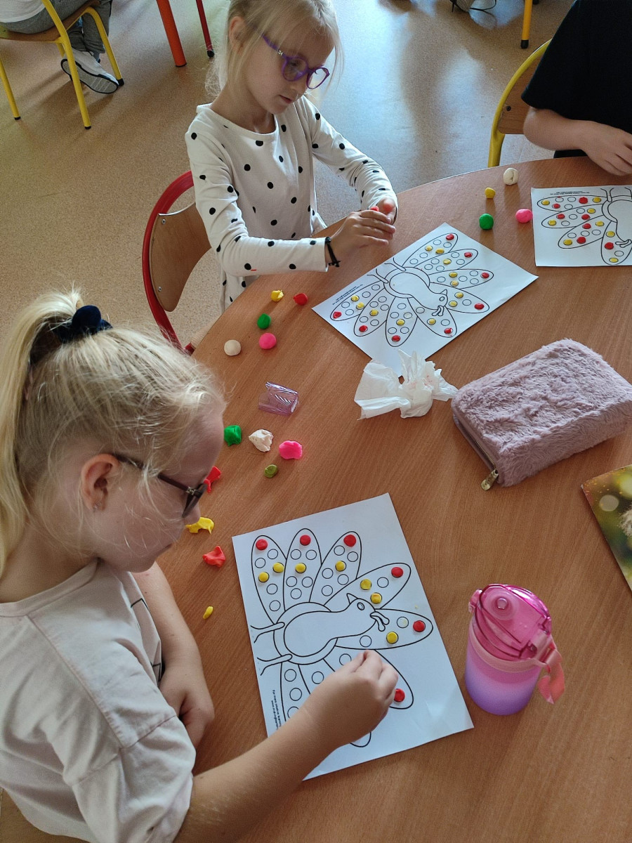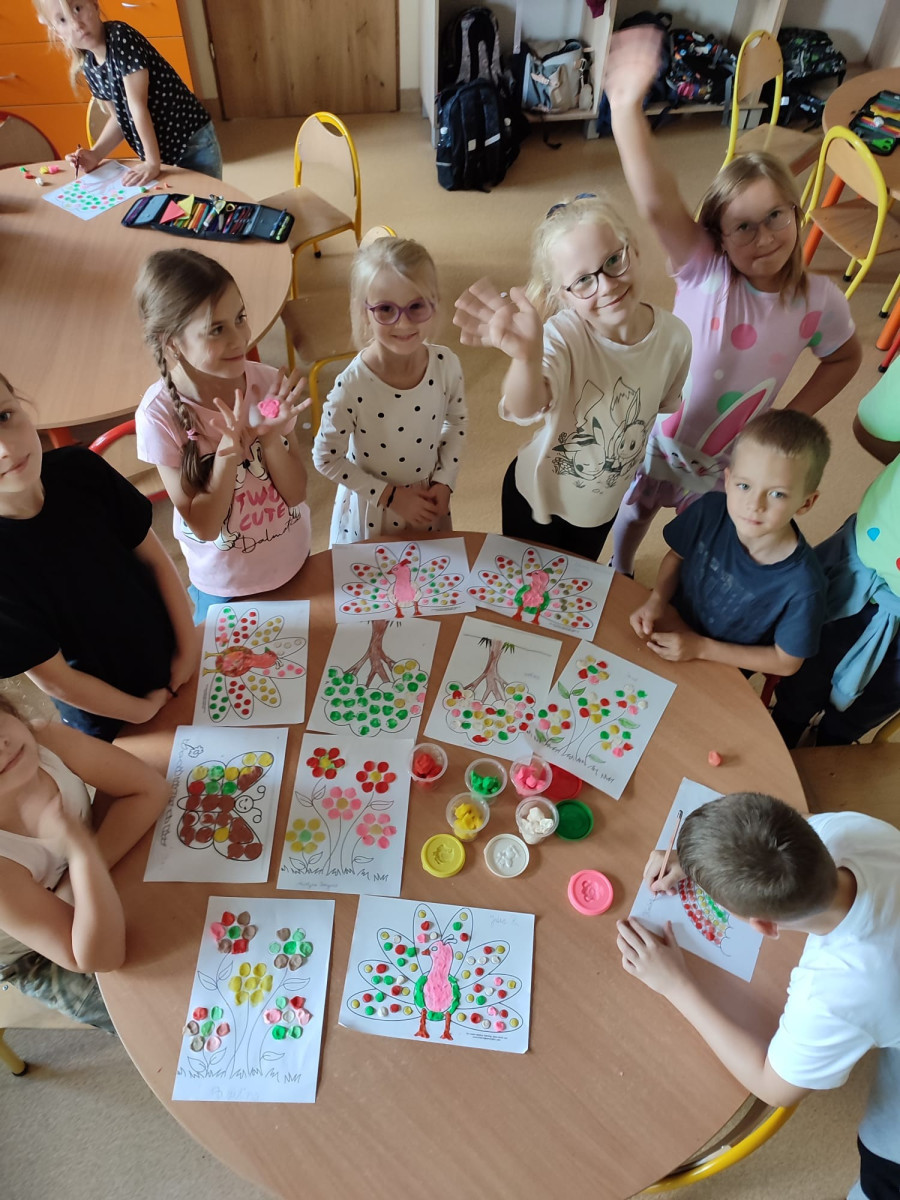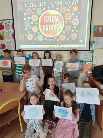 W świetlicy obchodziliśmy Międzynarodowy Dzień Kropki - święto kreatywności i odwagi w odkrywaniu swoich talentów. Uczniowie brali udział w poszukiwaniu ukrytej kropki, ćwiczeniach ruchowych z Panią Kropką, a także projektowali własne, kolorowe koszulki w kropki. Na zakończenie wykonali plastyczne prace z ciastoliny, w których również pojawił się motyw kropki. Zajęcia były pełne zabawy, twórczej energii i radosnej atmosfery.