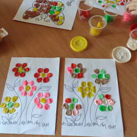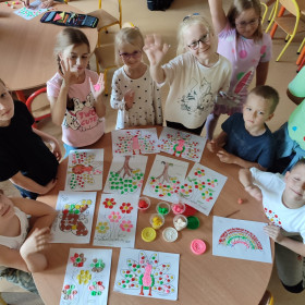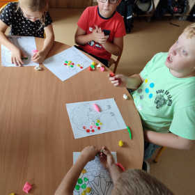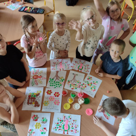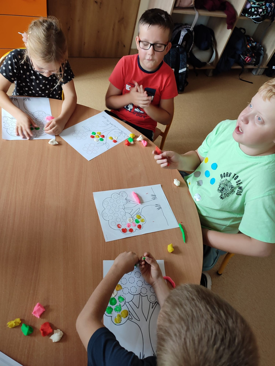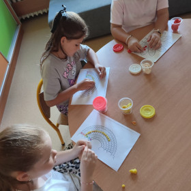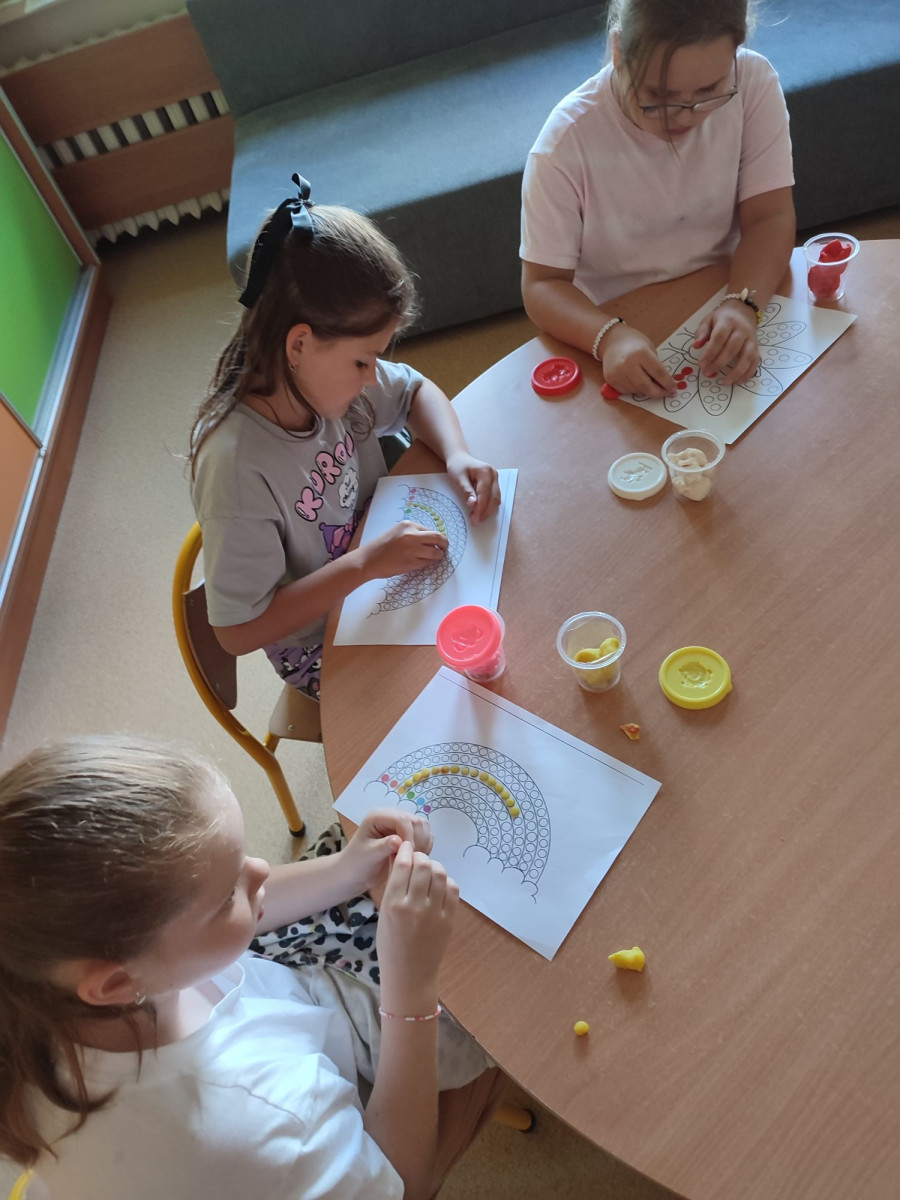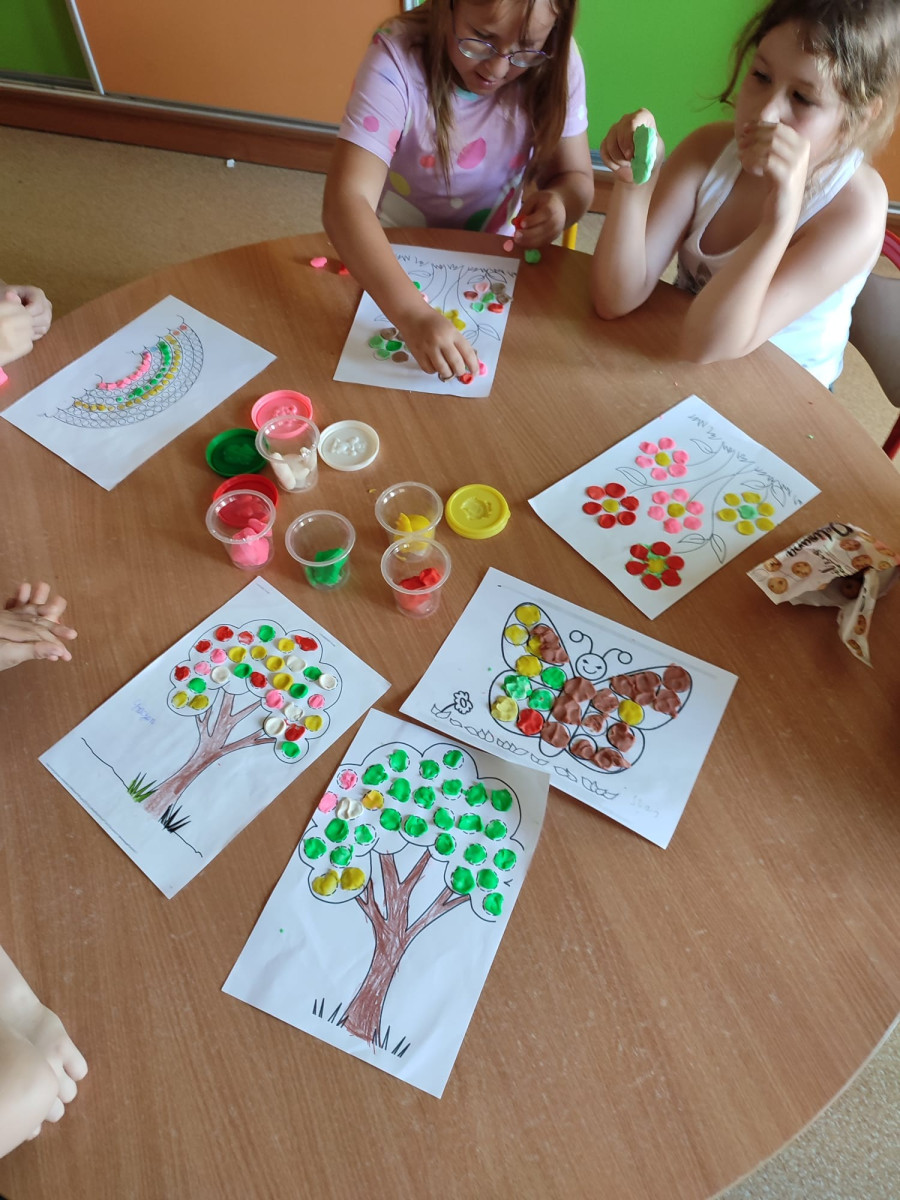 W świetlicy obchodziliśmy Międzynarodowy Dzień Kropki - święto kreatywności i odwagi w odkrywaniu swoich talentów. Uczniowie brali udział w poszukiwaniu ukrytej kropki, ćwiczeniach ruchowych z Panią Kropką, a także projektowali własne, kolorowe koszulki w kropki. Na zakończenie wykonali plastyczne prace z ciastoliny, w których również pojawił się motyw kropki. Zajęcia były pełne zabawy, twórczej energii i radosnej atmosfery.