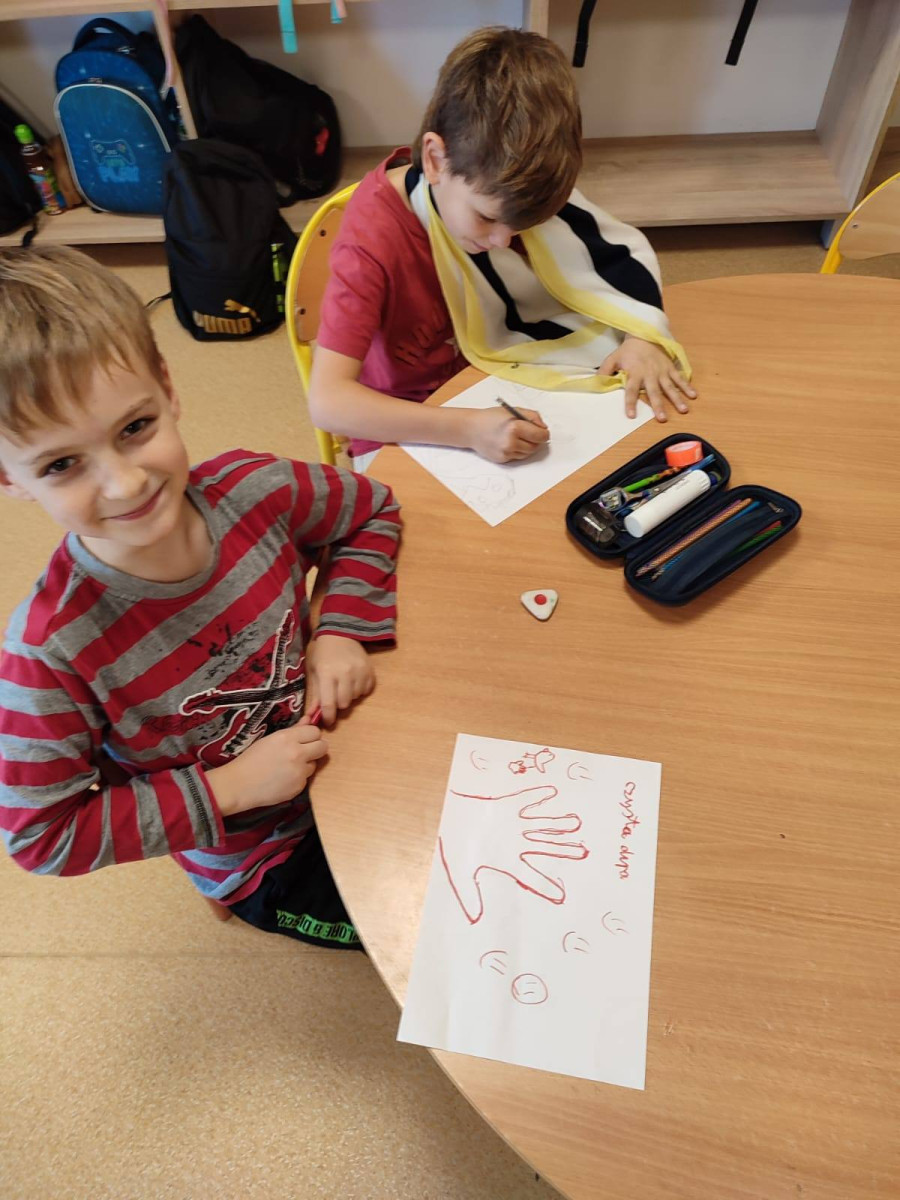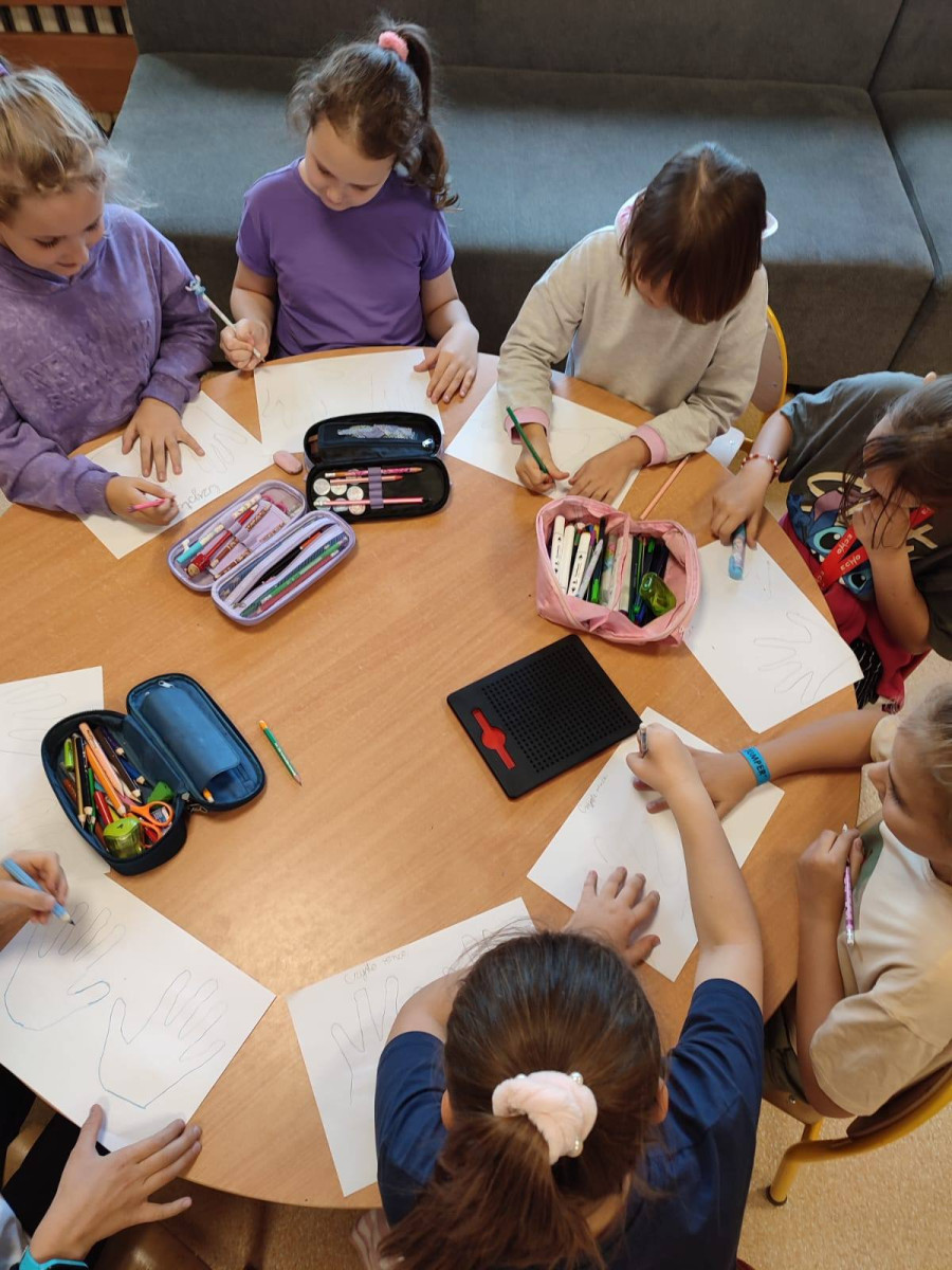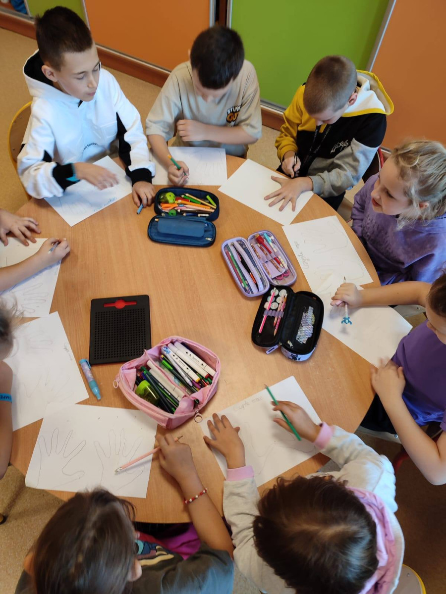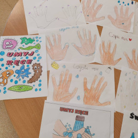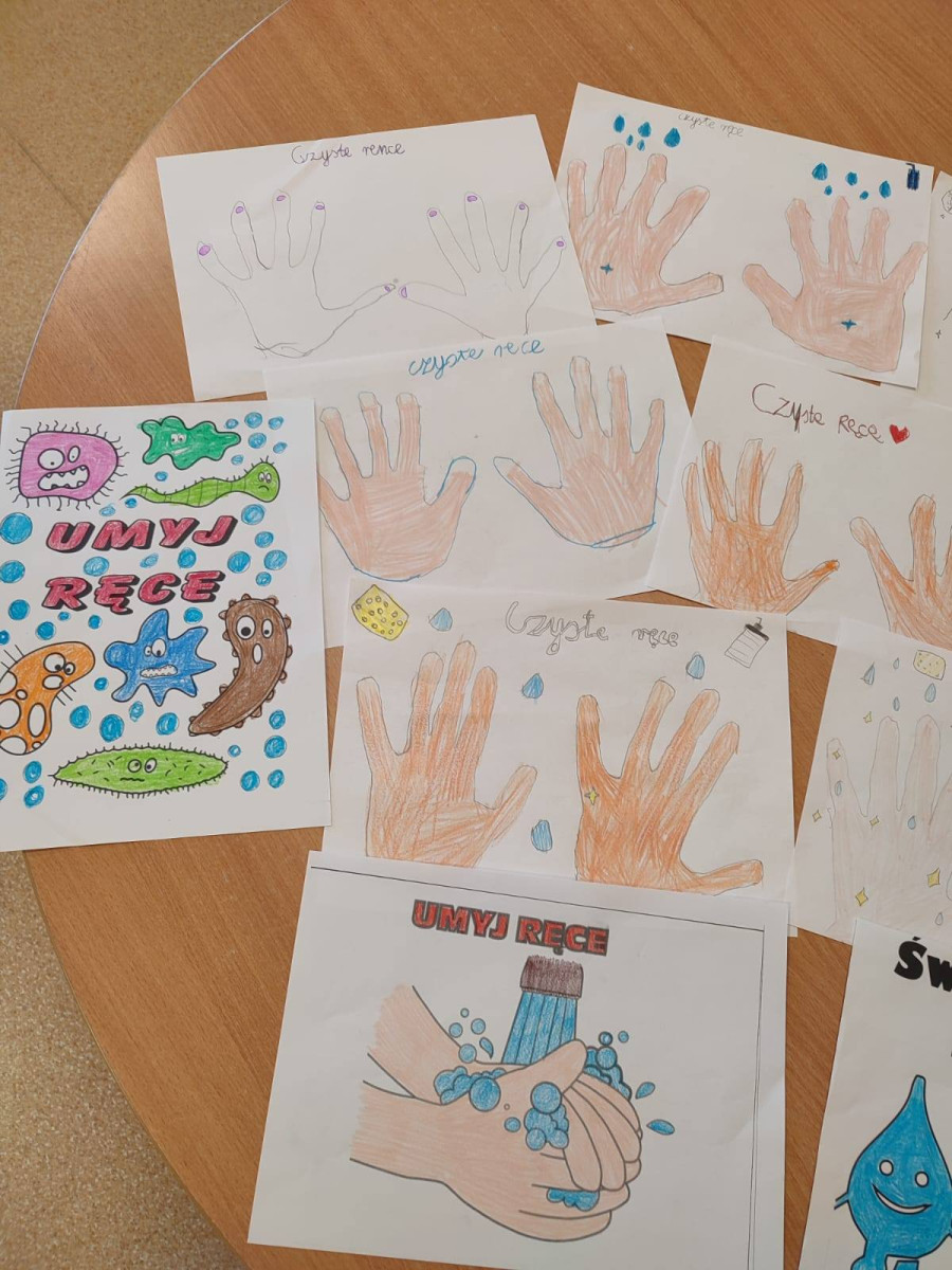 W tym ważnym dniu rozmawialiśmy o tym, jak istotne jest dbanie o czystość dłoni. Dzieci obejrzały film o prawidłowym myciu rąk, a potem… odrysowywały swoje dłonie i ozdabiały je kolorami, tworząc piękną galerię „czystych rąk”!