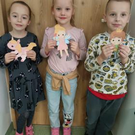 Z okazji Międzynarodowego Dnia Postaci z Bajek wspólnie czytaliśmy nasze ulubione bajki, rozmawialiśmy o naszych ukochanych bohaterach i odkrywaliśmy, co sprawia, że bajki są tak wyjątkowe. Dzieci wykazały się ogromną kreatywnością — tworzyły magiczne różdżki, wizytówki bajkowych postaci, rozwiązywały zagadki oraz wspólnie przygotowały scenografię do wybranych bajek!