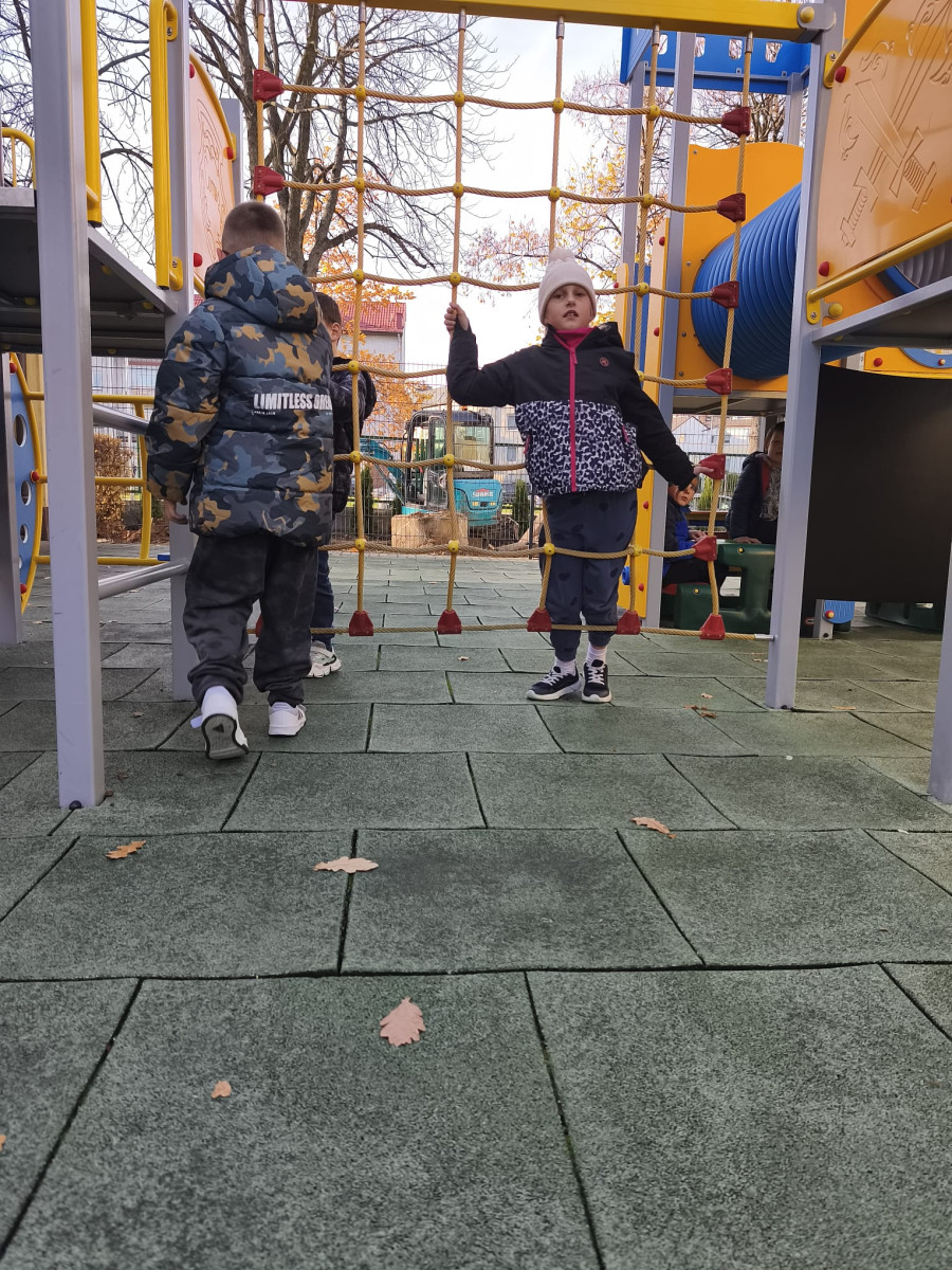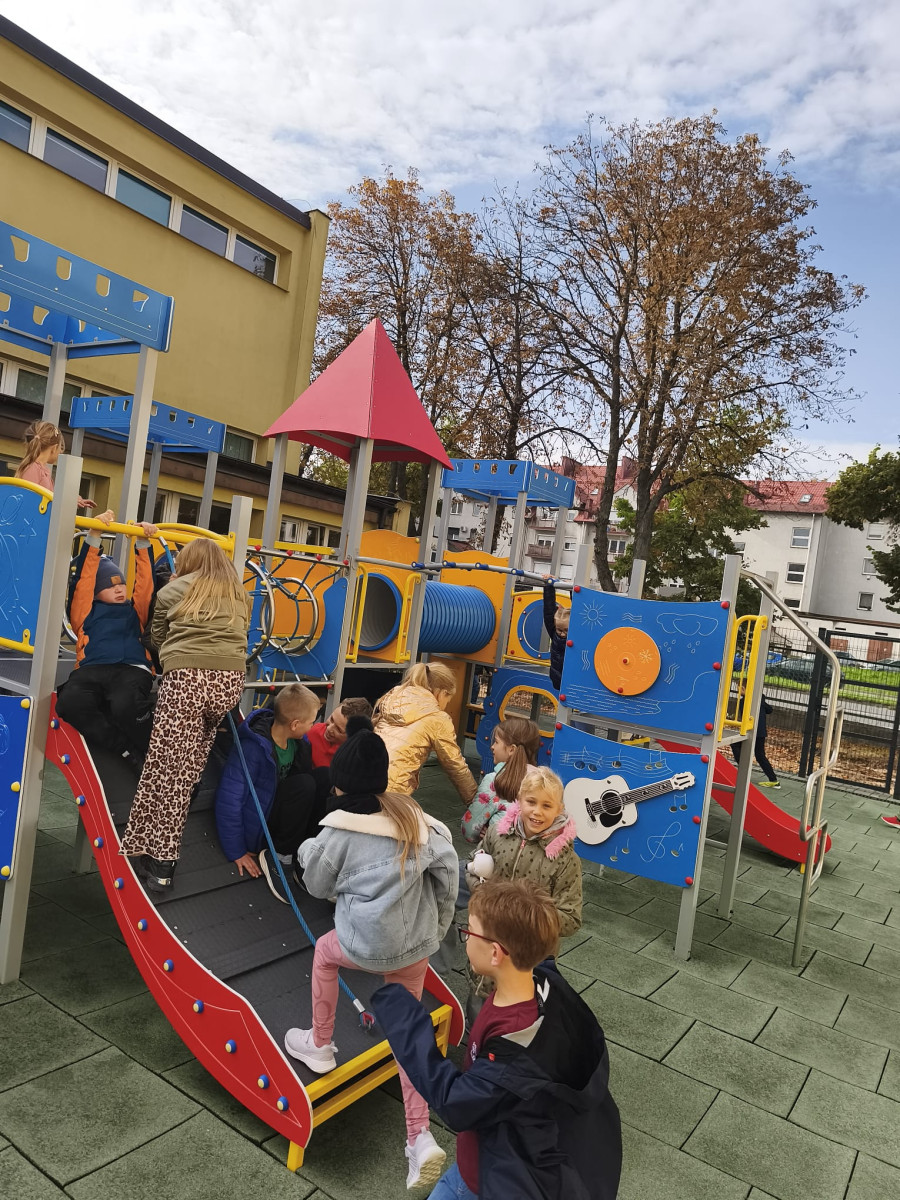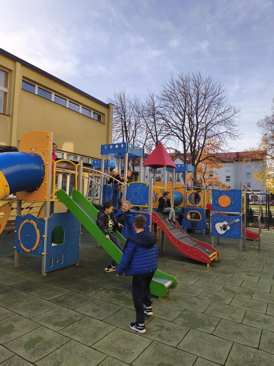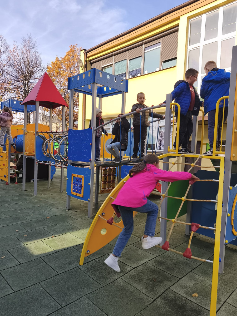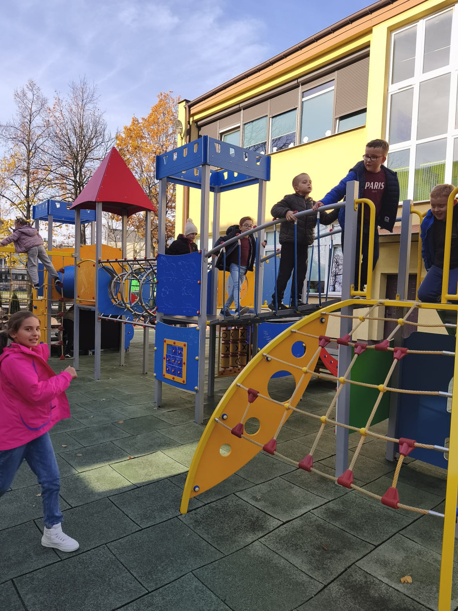 Opublikowano: 06.11.2025 Komu jak komu, ale świetliczakom żadna pogoda niestraszna! Tym bardziej trzeba było skorzystać ze słonecznej aury i odrobinę poszaleć na szkolnym placu zabaw. Niby nic, a radości co niemiara!