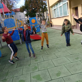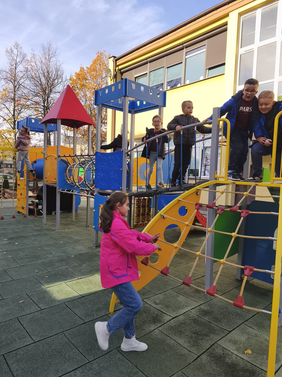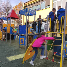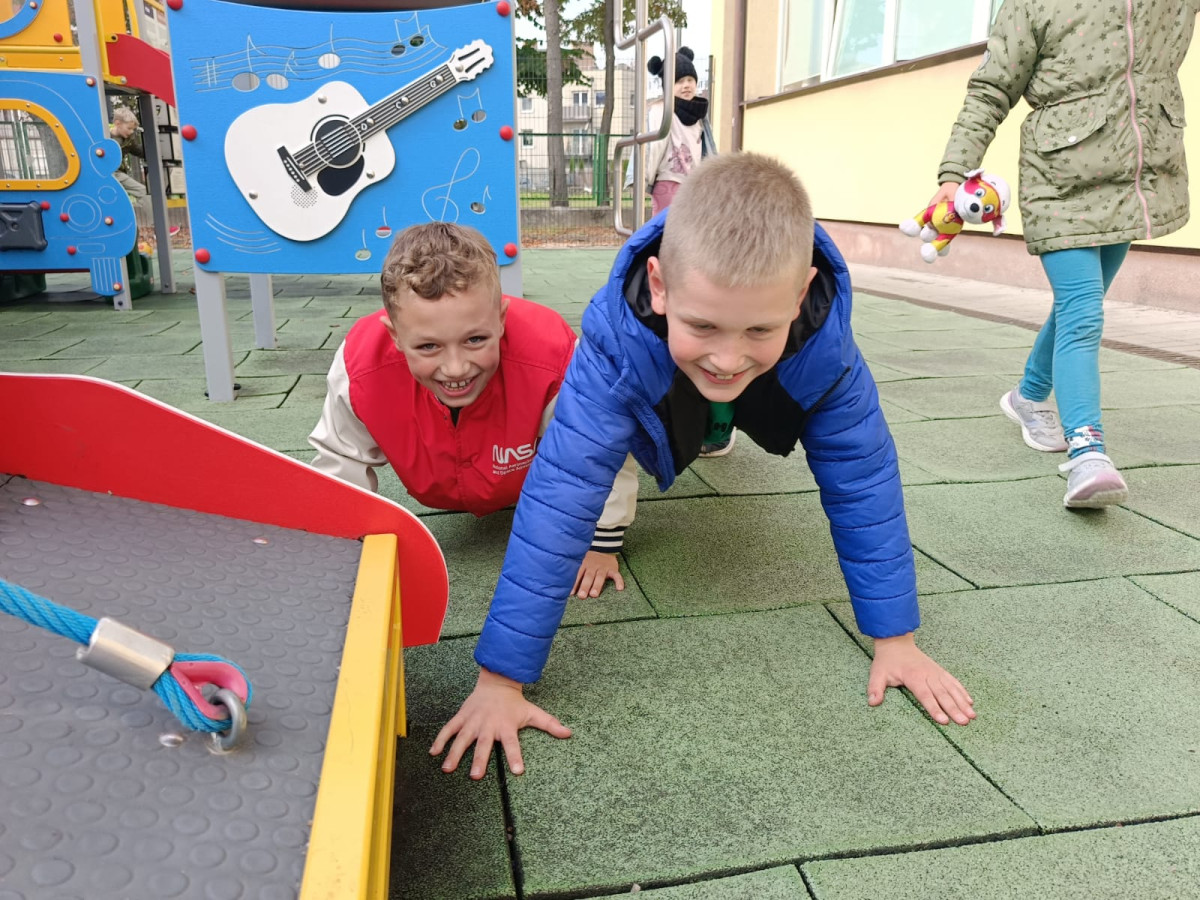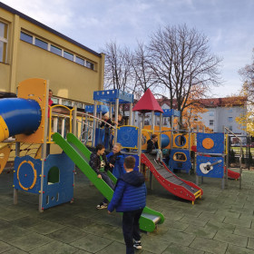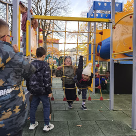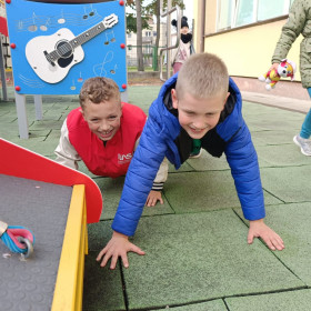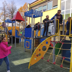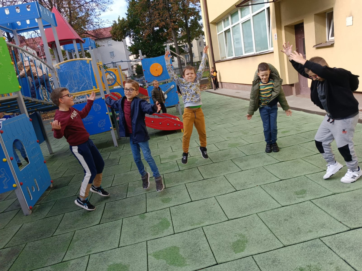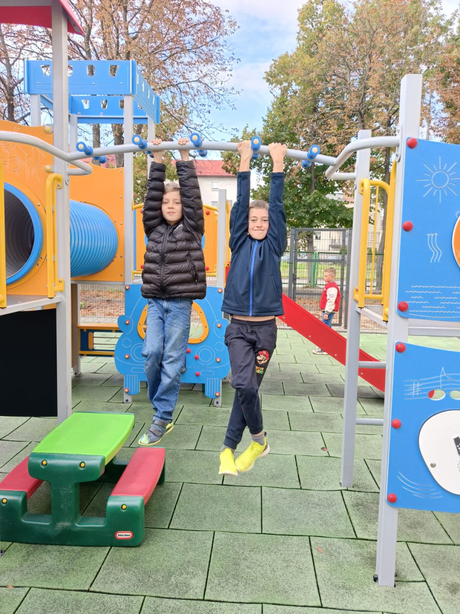 Opublikowano: 06.11.2025 Komu jak komu, ale świetliczakom żadna pogoda niestraszna! Tym bardziej trzeba było skorzystać ze słonecznej aury i odrobinę poszaleć na szkolnym placu zabaw. Niby nic, a radości co niemiara!