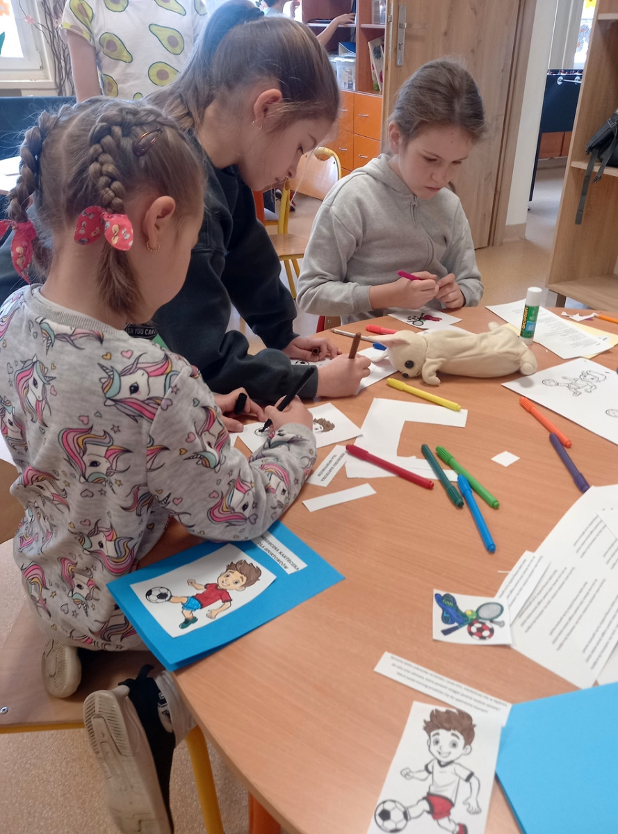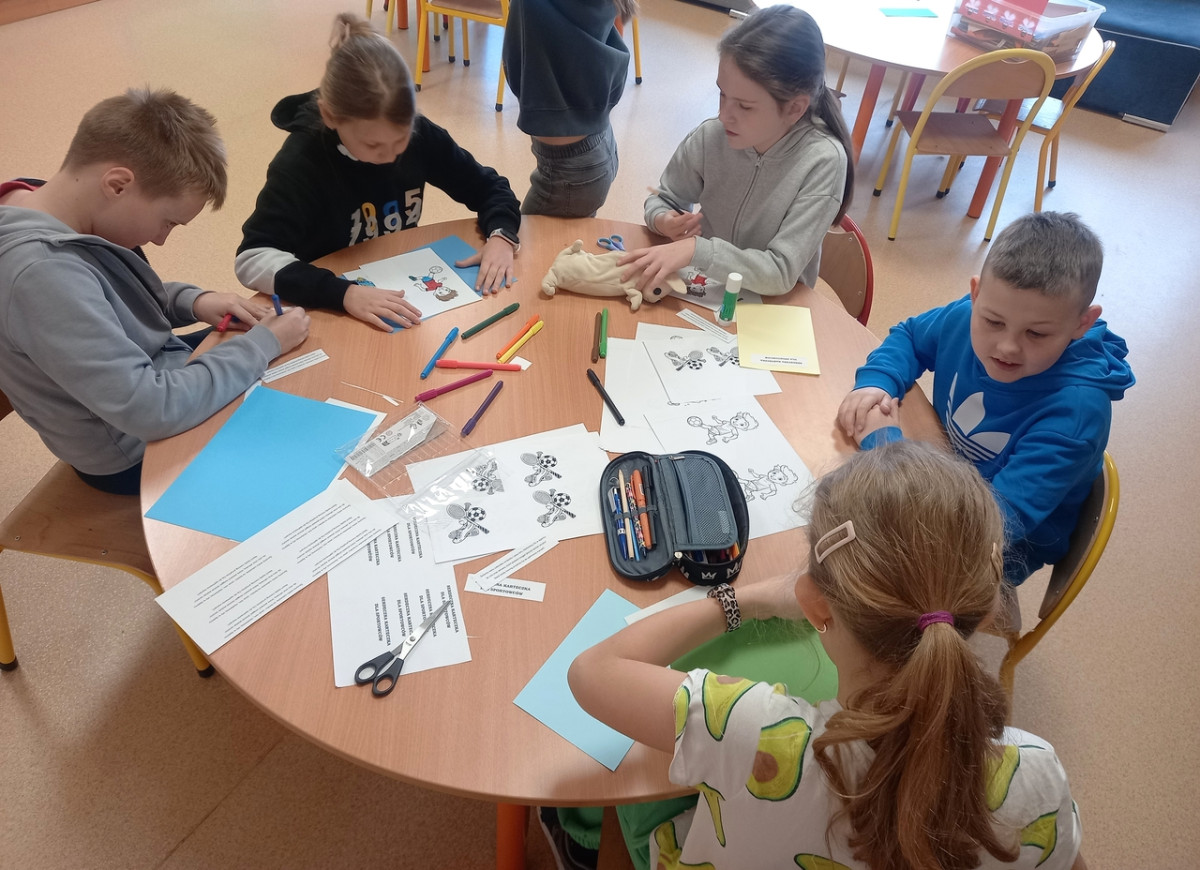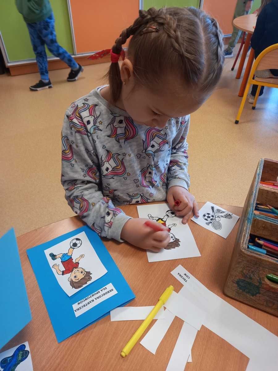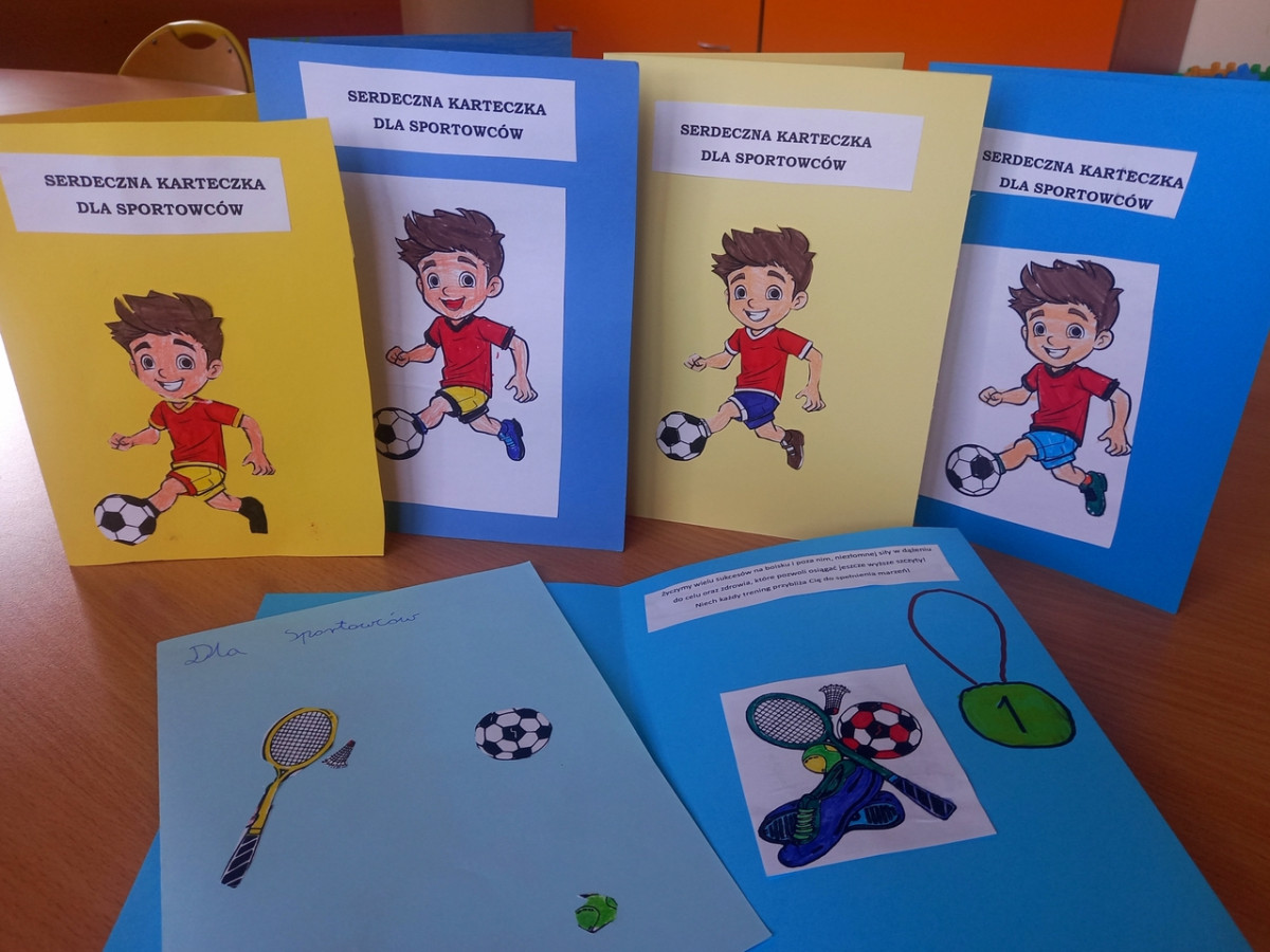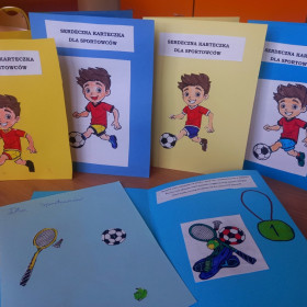 Świetliczaki wykonały kolejne zadanie z projektu "Serdeczna Karteczka". W tym miesiącu powstały kartki dla sportowców, osób udzielających się w środowisku sportowym.