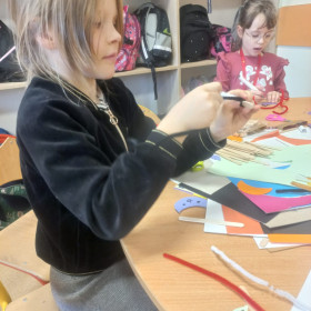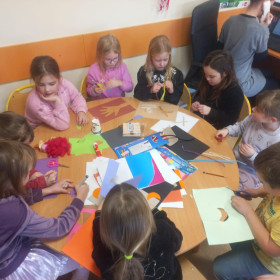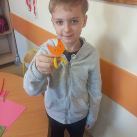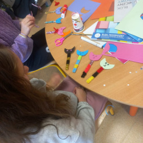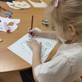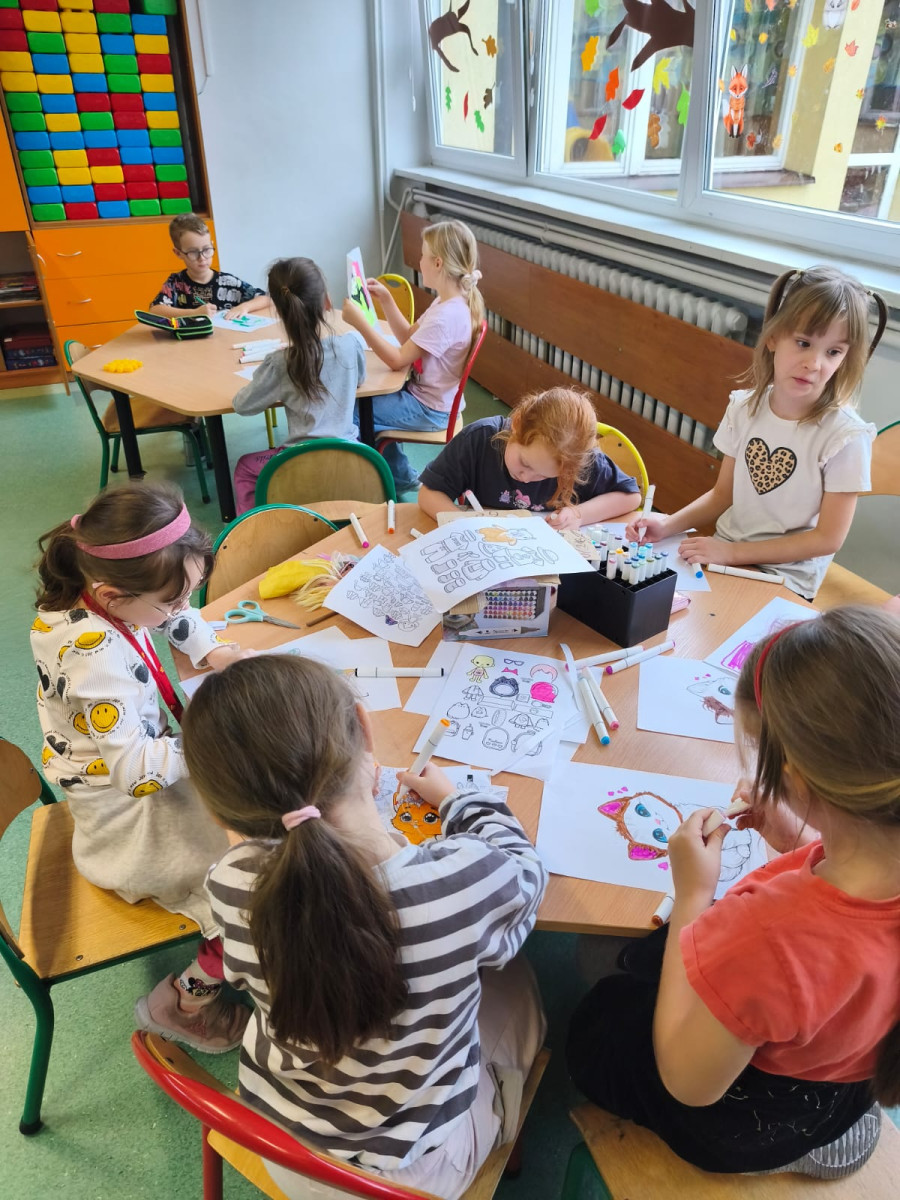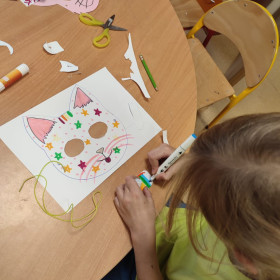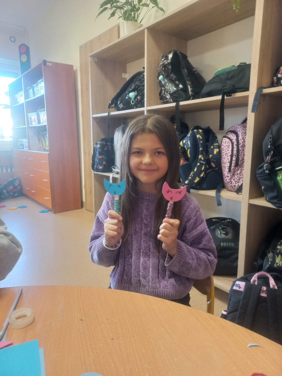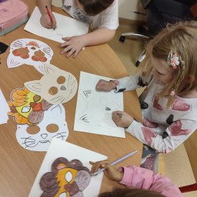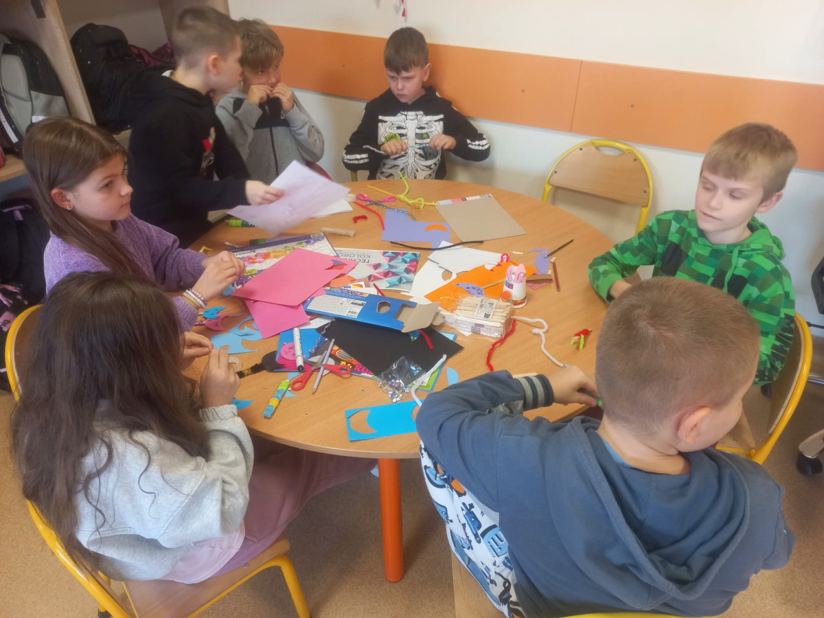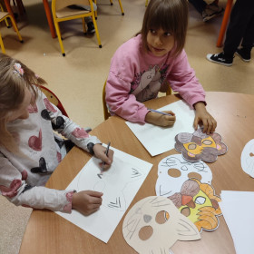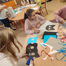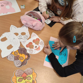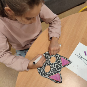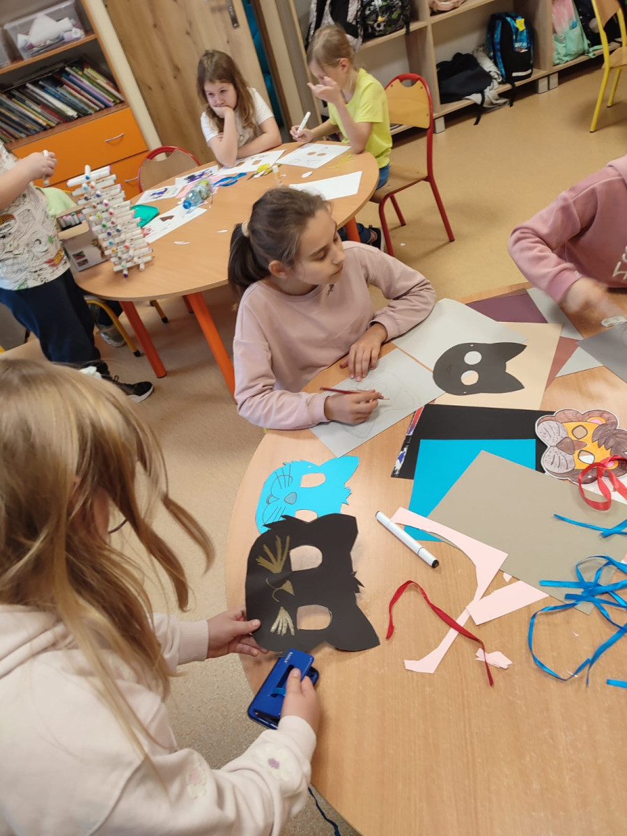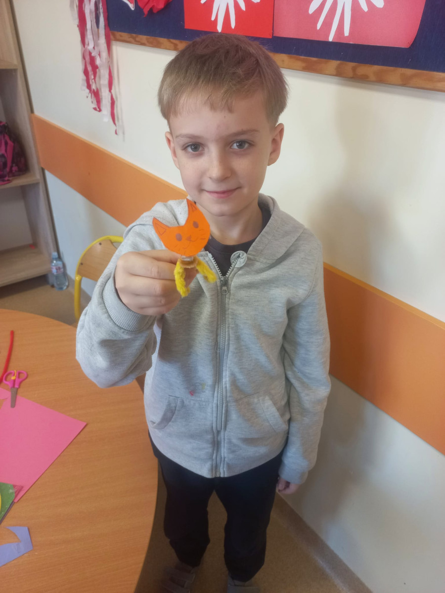 W części plastycznej, dzieci wykonały tematyczne prace artystyczne, tworząc sylwetki czarnych kotów, maski oraz ozdoby inspirowane kocimi motywami. Zajęciom towarzyszyła radosna atmosfera i duża dawka kreatywności.