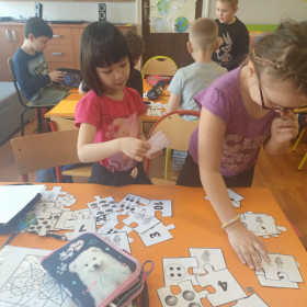 Ubiegły tydzień minął w świetlicy pod hasłem gier i zabaw matematycznych. Organizowane były zajęcia mające na celu rozbudzenie ciekawości matematycznej uczniów. Dużym zainteresowaniem cieszyły się gry matematyczne oraz układanie puzzli z zadaniami. Nauczyciele starali się pokazać dzieciom, że matematyka to nie tylko liczby i zadania tekstowe lecz przede wszystkim fascynująca zabawa.