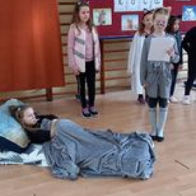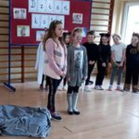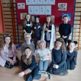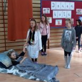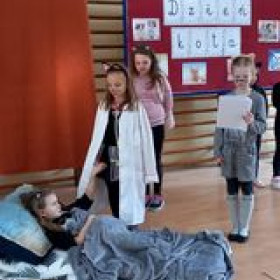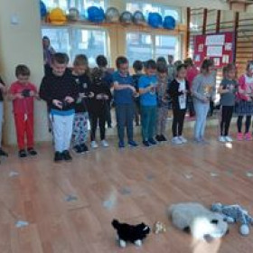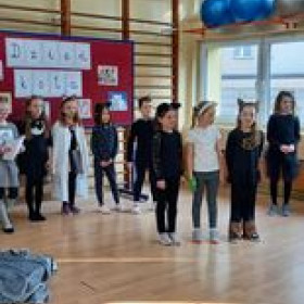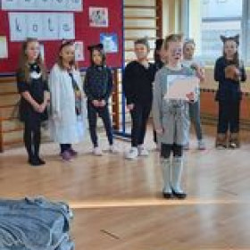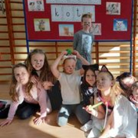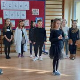 17 lutego przypada Światowy Dzień Kota. W obchody tego nietypowego święta zaangażowali się uczniowie ze Świetlicowego Koła Teatralnego i przygotowali krótkie przedstawienie, które rozpoczęło się od wspólnego śpiewania piosenki „Wlazł kotek na płotek”. Podczas występu mali aktorzy byli przebrani za koty, a na ich twarzach wymalowane były piękne czarne noski i wąsiki. Dzieci z oddziału przedszkolnego oraz ze świetlicy z zainteresowaniem obejrzały inscenizację wiersza „Pan kotek był chory”. Najmłodsi poznali również ciekawostki i zabawne wierszyki o naszych milusińskich. Na koniec przedszkolaki wzięły udział w wesołej zabawie „Kocie polowanie na myszy". Mamy nadzieję, że występ nie tylko rozbudził zamiłowanie do kotów, ale także zachęcił do niesienia pomocy bezdomnym kociakom.