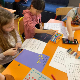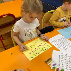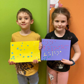 4 stycznia w dzień urodzin Louis Braille -twórcy alfabetu dla niewidomych obchodzimy Światowy Dzień Braille'a. Dzieci korzystając z alfabetu wykropkowaly z plasteliny swoje imię, nazwisko i wiek.