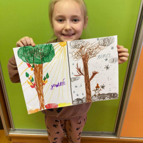 Opublikowano: 19.05.2023 Zajęcia w Klubie Małego Ekologa - poznajemy jakie zmiany zachodzą w przyrodzie, na pierwszy rzut jesień i zima.