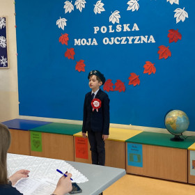 Do konkursu przystąpił uczeń klasy 1a - Michał Bochnak. Michał podczas finałowego wystąpienia wyrecytował wiersz Ludmiły Marjańskiej pt. „Ziemia rodzinna”. Ponadto, Michał musiał wykonać pracę plastyczną nawiązującą do tematyki wiersza.