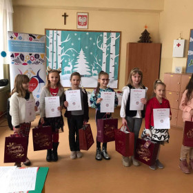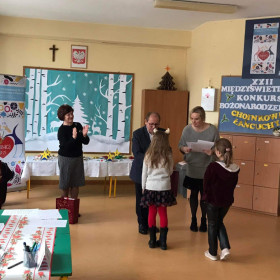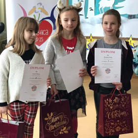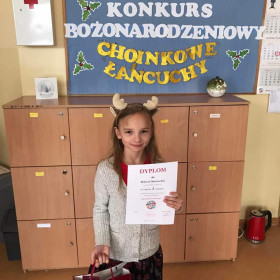 Opublikowano: 23.12.2022 Mamy kolejny sukces! Miło nam poinformować, że uczennica klasy 3 a - Wiktoria Mochocka zajęła I miejsce w XXII Międzyświetlicowym Konkursie Bożonarodzeniowym "Choinkowe łańcuchy". Serdecznie gratulujemy! i życzymy dalszych sukcesów!